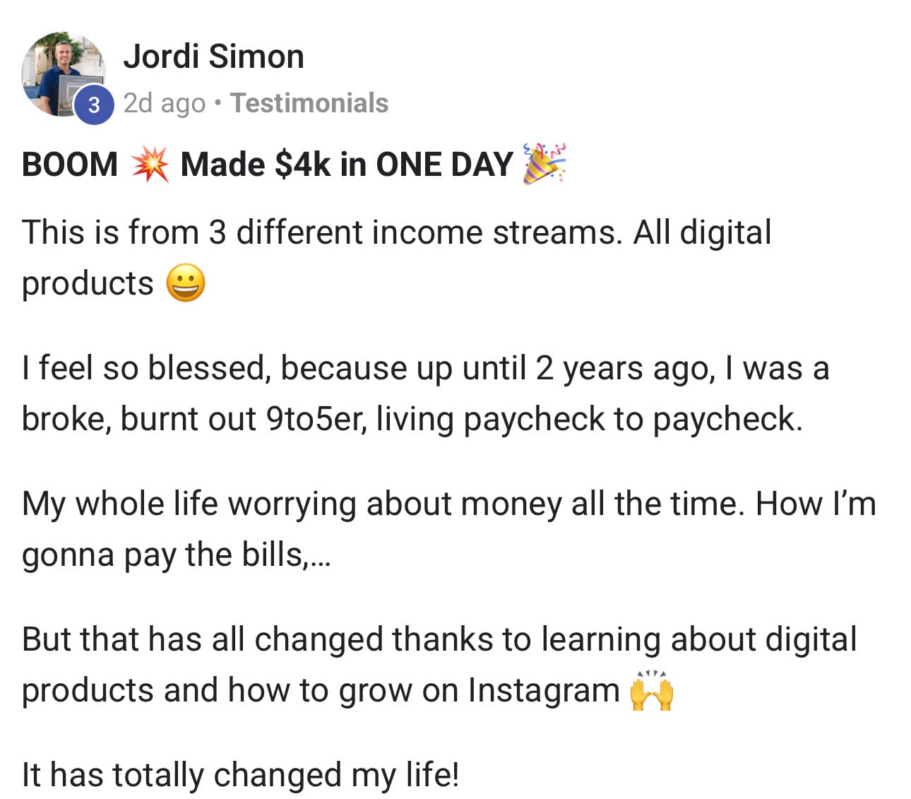 This course actually comes with its own community of 20,000+ people where you can ask questions & network. In addition to that, if you get the course with me, you will be added into my PRIVATE CHANNEL youll receive my personal phone number & an optional group chat with weekly calls! I want to see you become a success story!